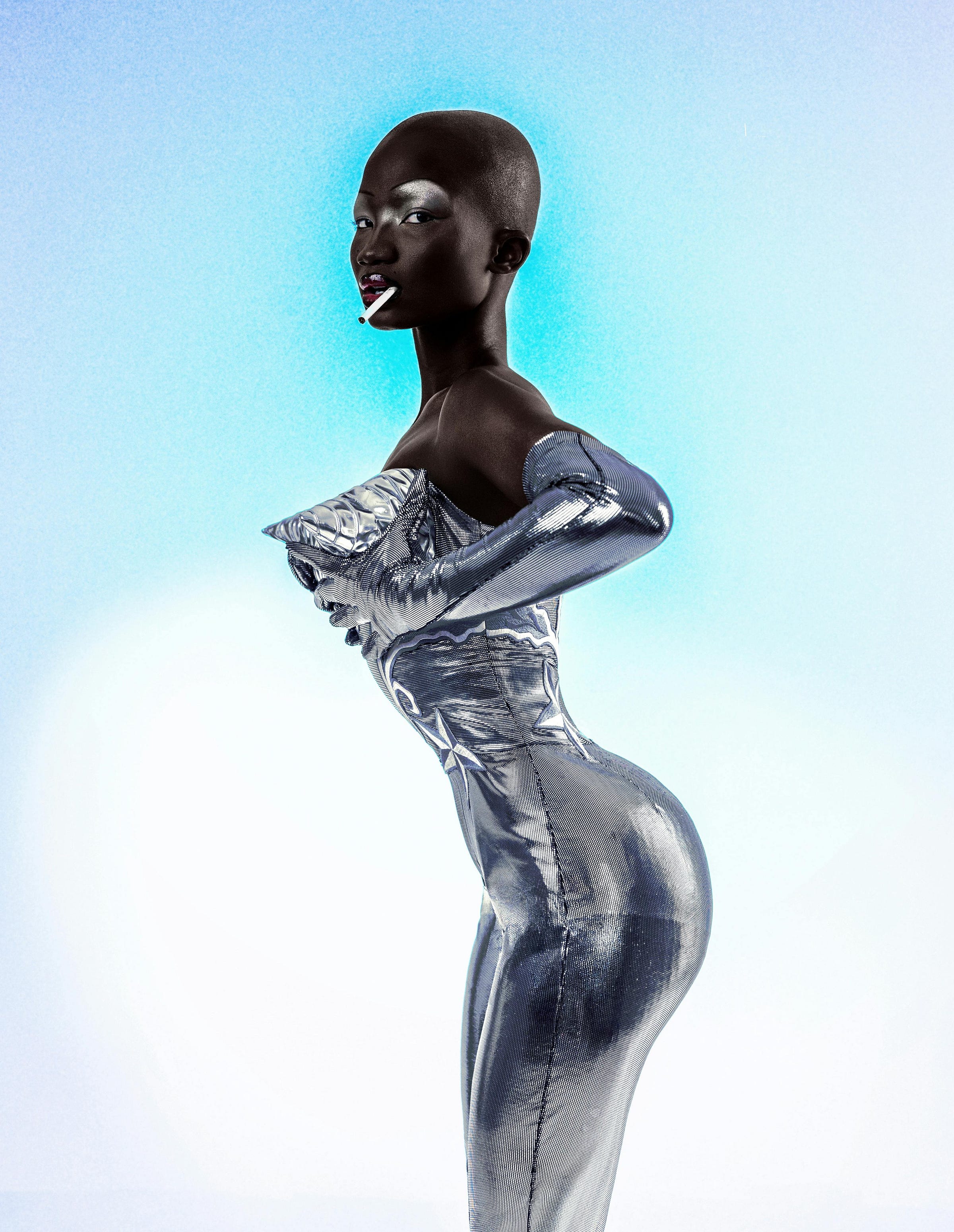 He wants to ask what she’s planning to draw on four faceless walls, nothing kind, nothing withstanding. The woman inhales, holds, ghosts her exhale into a ring that finds the azure ceiling, and smoke hovers above her like Chinese Whispers. The silver skintight bodysuit says it all; she exists for some semblance of satisfaction, perhaps his? Is she a working girl?